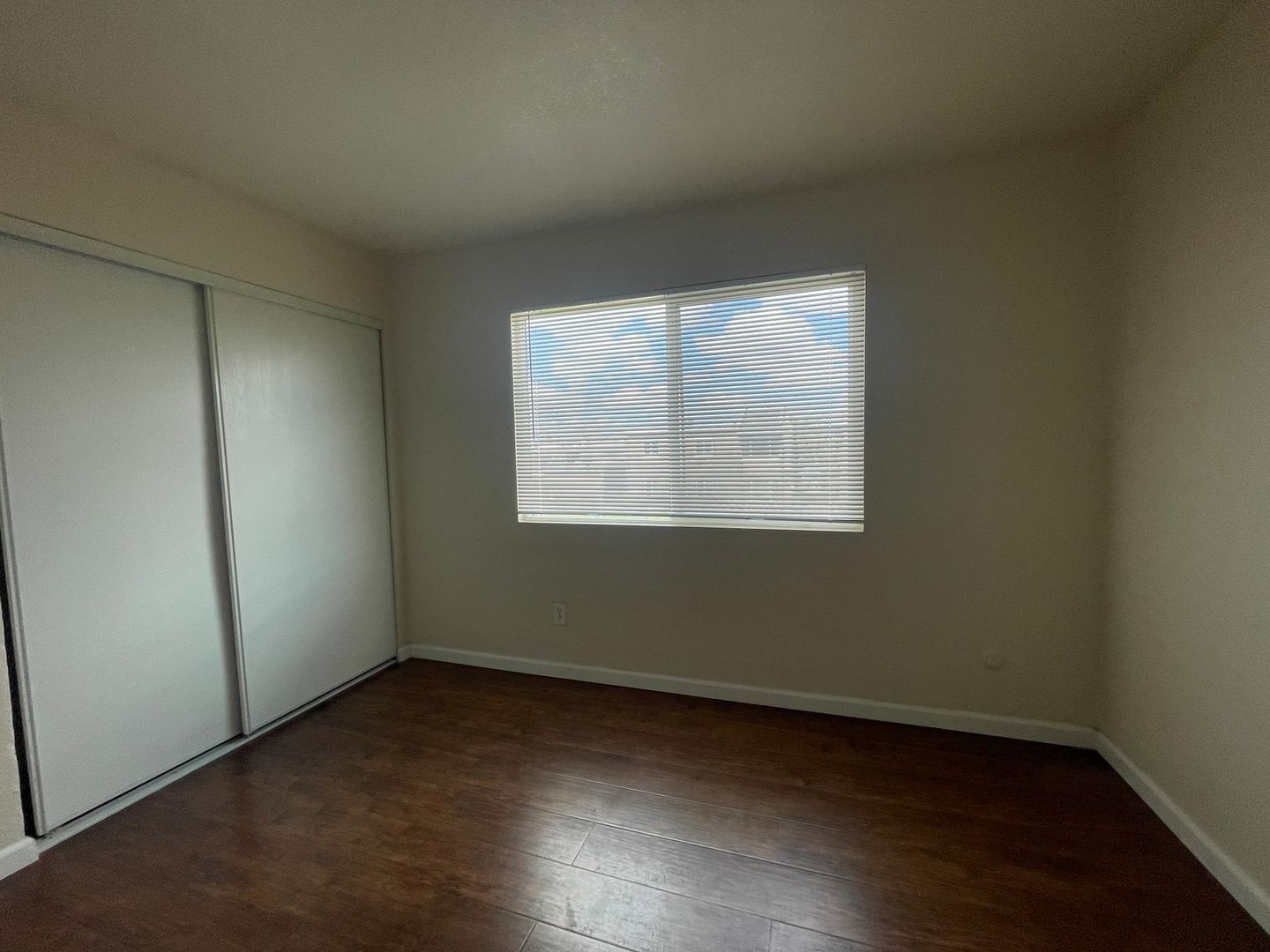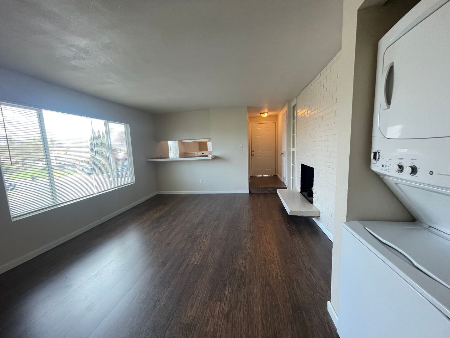 Inside, you'll find a washer, dryer, and refrigerator included for your convenience. The wood laminate flooring adds a touch of elegance, while the walk-in closet provides ample storage space.